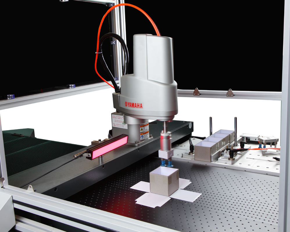 1 . SCARA (Selective Compliance YAMAHA Robot Arm) for spotting the grey board box